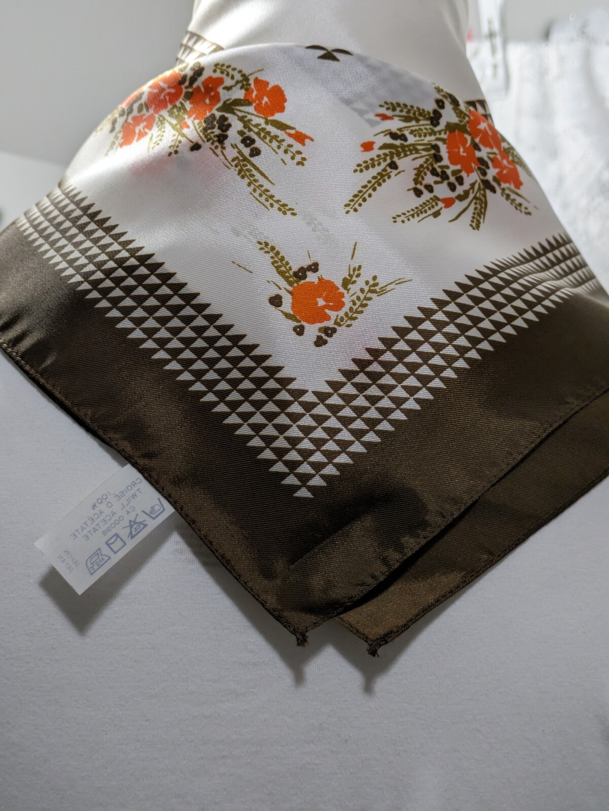 Size: Approx. 19 inches square Shape: Square Fabric: 100% Twill Acetate Maker/Designer: Unknown Made in Japan As new. With tag. Add a touch of vintage style to your wardrobe with this stunning designer scarf. The scarf features a beautiful and intricate Mid Century Modern design that is sure to make you stand out from the crowd. This scarf is a must-have for any fashion-savvy woman. This scarf is perfect for adding a pop of drama to your outfit, and its versatility means that it can be worn in a variety of ways. Whether you're looking to add a touch of glamour to your everyday look or looking for a statement piece for a special occasion, this scarf is the perfect choice. Seller will combine items for shipping. Request quote before buying.