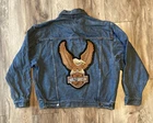 Vintage 90s Wrangler Hero Denim Jacket Harley Davidson Patch Men’s Sz XL. The jacket does have some staining around the collar. The item will ship out safely and securely the same or next business day.