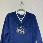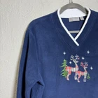 Item For Sale: Vintage 90s Y2K Women's Croft & Barrow Fleece Pullover Sweater Size large Navy blue color with white contrasting trim Embroidered Christmas trees & snowflake accents with plaid flannel reindeer patches V-neck line Key terms: Grandma, granny, country, Christmas, ugly sweater, vintage, 90s, Y2K Fabric Content: 100% polyester Approximate Measurements: Shoulder to shoulder: 18" Pit to pit: 23" Length: 27" Item Condition: Item is in very good preowned condition with no flaws. Shipping Information: Purchases are shipped the next business day after full payment is received, and on occasion an item purchased early in the day may end up shipping out that same day. The shipping service used will depend on the specific weight and dimensions of the item, but the most commonly utilized services are USPS First Class, USPS Ground Advantage, or USPS Priority Mail. If this is a book purchase, USPS Media Mail is used. Free returns are accepted for any reason within 60 days of purchase. The return shipping is free to the buyer. Once the returned item has been received, you'll be issued a refund for the original item cost (not including the original shipping cost). Store Information: Thank you for supporting my small business! Providing affordable, quality products and top-notch customer service is my top priority. If you have any concerns about an item you receive, please don't hesitate to reach out. I'm always happy to address any concern you may have.
