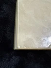 This vintage alabaster hand carved hinged lid jewelry trinket box is a small, rectangular box made in Italy. The box features a beige and gray color with a glossy finish, exuding an Italian style. It falls under the theme of art, retro, and romantic, making it a unique and elegant addition to any collection of decorative collectibles. The box is unboxed and should be cleaned with a damp cloth. Perfect for storing small jewelry items or keepsakes, this trinket box is both functional and visually appealing.