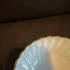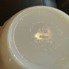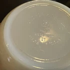 Vintage Anchor Hocking Fire King White Swirl Gold Trim Berry Bowl is a bowl set made of glass with an impressed backstamp. It features a swirl pattern in white with gold trim, part of the Fire-King product line. This vintage piece is a charming addition to any kitchen or dining collection.