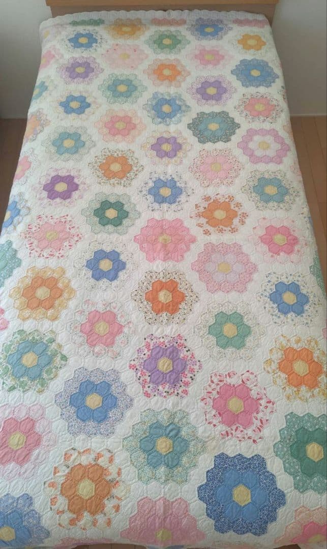 $ 157.35Handmade vintage cotton quilt with "Star of Bethlehem" pattern.