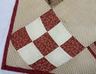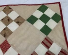 Up for sale is a vintage/antique patchwork quilt table topper or doll quilt. The design is Nine Patch. Small patches - 1 1/4” by 1 1/4”. The fabrics are very early calico prints, dots, calicos, solids. Great examples of early calico prints. The colors are light beige, brown, green, rust, peach, pink, white, multi. The back is light red calico print. The border is light red calico print, hand sewn. Medium thickness. Tacked at center. Great early calico prints. Hand made. Made in USA. Measures 9 1/2” by 10 1/4”. Made from an antique quilt top - 1880’s era to early 1900’s. Very, very good condition. Hand made. Made in USA. Not hand quilted. Back fabric is not vintage. Please refer to dimensions for size of this item. ** Please refer to all pictures as they are a part off the description. 🦜🌷🐦⬛ 🌺🌺🌺🌺 Thanks and happy shopping. I will combine shipping charges. Smoke free home. Please make payment in three days ~~~~🌹🌻🌷Please visit my eBay store: 🇺🇸webbsamericancountry1🇺🇸 for over 2000 vintage and collectible items.~~~~❤️🇺🇸🪰