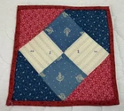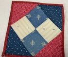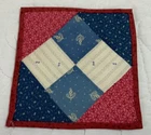 Up for sale is a vintage antique patchwork quilt table topper or doll or teddy bear quilt. Small. Very pretty early calicos. The design is Four Patch. The fabrics are early calico prints, florals and prints. Great antique prints. The colors are blue, light blue, white, grey, pink, pinkish red. The border is light red calico print. The back is light red calico print. The border is hand sewn. Medium thickness. Cotton. This vintage quilt table topper is made from a vintage antique quilt block. The back and border fabric is not vintage. Measures 6” by 6”. Hand made. Made in USA. From the early 1900’s era. Tacked at center. Not hand quilted. 💗💗💗💗🌹🐦⬛🌺 Thanks and happy bidding. I will combine shipping charges. Smoke free home. Please make payment in three days. ~~~~🌹🌻🌷Please visit my eBay store: 🇺🇸webbsamericancountry1🇺🇸 for over 2000 vintage and collectible items. 🌺🌼🌹