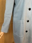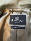Add a touch of vintage to your wardrobe with this gorgeous Aquascutum pea coat. Made of 100% wool in a stunning duck egg blue colour, this single-breasted coat features a button closure, collared neckline, and long sleeves with shoulder pads. It also has front pockets and a back slit for added comfort and style. The 3/4 length coat is perfect for winter and spring occasions, whether you're travelling or going to work. The coat is fully lined with acetate, ensuring a comfortable and warm fit. It's a classic piece that will never go out of style, perfect for those who love the vintage look. This coat is a UK size 8 Uk. Tiny wear on the right shoulder & mark on the lining (see pictures for reference) overall good vintage condition
