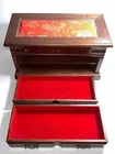 Crafted with an eye for detail, this Vintage Asian Wooden Trinket Keepsake Jewelry Box embodies the elegance of Asian culture. The medium-sized box measures 13 inches in width and 7 inches in height, offering ample space for your cherished jewelry and keepsakes. Its rich brown color and intricately carved design evoke the serenity of a temple, making it a tasteful addition to any collection. The box features a combination of wood and brass materials, ensuring both durability and a touch of sophistication. It comes beautifully boxed, ideal for gifting or as a personal treasure. With its Asian, Chinese, and Japanese thematic influences, this piece is not just a storage container but a piece of art that celebrates the beauty of Asian heritage. Good Condition show normal wear . See ALL photos