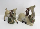Vintage Beautiful Porcelain Christmas Reindeer Pair Figurines Centerpiece - EUC . Beautiful Pair of Christmas Reindeer in Excellent Used Condition. Large Reindeer is 8 inches high, 8 inches long, and 4 inches wide. Smaller Reindeer is 6 3/4 inches high, 6 3/4 inches long, and 3 inches wide. Gently used, charming, and in near flawless condition. Minor surface marks may exist due to use and age. No chips, cracks or repairs and no crazing of the finish. Beautiful set for your table. This will make a great addition to any Christmas collection. Multiple shipping options available. USPS Ground Advantage is cheaper, USPS Priority Mail is faster - Please review all pictures as these are part of the description of this item - Please pay for items within three days of purchase - Feedback is highly appreciated - Message me with any questions before purchase