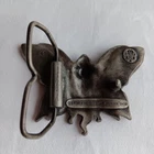 Vintage Bergamot Brass Works Belt Buckle featuring a whimsical design of fairy butterfly wings, crafted in pewter brass in the 1970s. This unique accessory is a true statement piece for any adult looking to add a touch of fantasy to their wardrobe. Made in the United States, this original piece captures the hippy vibe of the era with its intricate detailing and vintage charm. Perfect for collectors or those who appreciate retro accessories, this belt buckle is sure to stand out and make a statement.