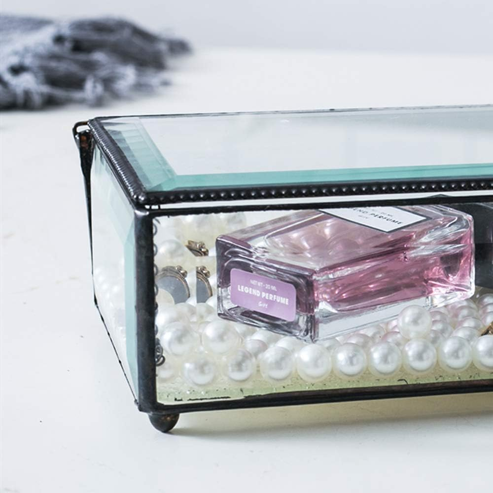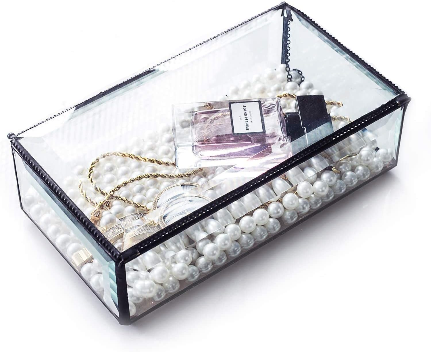 This jewelry box is absolutely stunning! The beveled glass gives it a vintage yet elegant look, perfect for displaying my favorite pieces. It's sturdy, well-made, and the black frame adds a sleek touch. The size is just right for rings, necklaces, and earrings, keeping them organized and dust-free. Love how it elevates my dresser—great for gifts too!