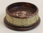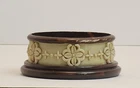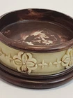 This vintage ceramic hand soap base holder by Bill Blass adds a touch of elegance to any bathroom vanity. The intricate carving on the base and the brown and cream color combination make it a unique and stylish addition to your collection of vanity accessories. Made in China, it serves its purpose as a soap or candle holder but is not food safe and should be used as a cup holder only. Perfect for collectors of vintage items or those who appreciate classic designs. Specifications: 3.5"W x 1.5"H Opening: 2.75" Weighs Approx: 8.5oz - Please note areas where the brown paint has come off. -No chips, breaks, or cracks. Vintage and antique items may have normal wear, crazing, or staining. -Please see images for details. Images may contain glare/reflection from lighting. Colors are represented to the best of my ability. I cannot account for how it is rendered on your computer/phone screen. -All items must be paid within 3 days of the sale. -Please message me with ANY questions. **All items are from a Smoke-FREE Home!** -SHIPPING Breakable and delicate items are double boxed and well wrapped to ensure your treasure arrives in one piece. Thank you for choosing Amy’s Eclectic Finds!