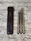 This vintage Bilora tripod is a must-have for any photographer looking for a sturdy and reliable support for their camera. Made in Germany, this tripod features a telescoping design that allows for easy adjustment of the height and angle of the camera. The pan/tilt head ensures that the camera is always steady and the aluminum material adds a touch of durability to the tripod. The tripod is designed to fit most cameras and is perfect for both indoor and outdoor photography. Its unique design and quality construction make it a great addition to any photographer's gear.