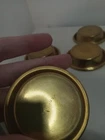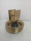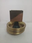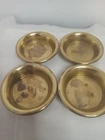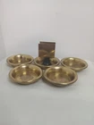 Vintage Brass Ashtray Set of 4 w/ Matchbox Holder USA Art Deco Stackable. Approximately 7 cm (or 2.75") in diameter each. Bottom of all says MADE IN U.S.A. Art deco in style, and I would assume from the 1940s, this set is in decent condition, with general wear due to previous usage. A great addition to any collection.