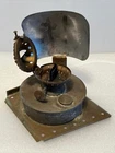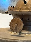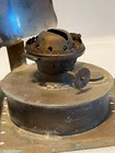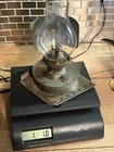 This nice old lantern is complete with the chimney, reflector fuel tank lid and a small piece of the wick. It is fully functional and left in the condition in which we found it. It measures 8" tall and approximately 5.5" wide at the base. The wick winder is marked SHERWOODS LTD BHAM. The top of the burner is hinged to allow easy access to the wick and the reflector slides out for cleaning. The fitter for the globe is 2". WE SHIP FAST!