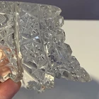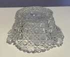 Vintage Brilliant Cut Daisy Buttons Bowl or Punch Bowl Stand - 6" diameter on open "top" portion of bow, 2.5" tall, 3.5" diameter on bottom or flat portion. This once glorious piece still have much life for display and use. It is cracked as seen in pictures so priced accordingly. The pattern picks up the light and you can feel the hand cut crystal when you pick up the piece. It's a unique pattern combo with what appears to be Daisy and Buttons interchanged with Hobstar as you go around the bowl, and it has a unique scallop at the top where it differs for these various sections. Please review all pictures carefully as they are part of the description. Questions are welcome.