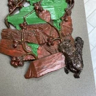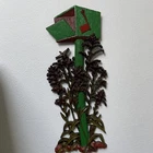 Two very interesting pieces by Burwood one is a mailbox and the other may be a well or a fence? I’m not really sure. they are in the grass green color with brick red & brown color details. Each piece is 18 inches tall and approximately 7 inches wide
