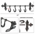 Durable Construction: Crafted from solid cast iron with a distressed finish for long-lasting strength and rustic appeal. Rustic Design: Add charming industrial or country style to your entryway, kitchen, bathroom, or patio. Perfect for both indoor and outdoor Use. 4 Movable Hooks: Features 4 sliding hooks that can be repositioned along the iron rod to suit different hanging needs — from kitchen mugs to bathroom towels or coats. Space-Saving Wall Organizer: Maximize vertical space in any room with this compact, wall-mounted metal hook bar. Vertical bevel ceiling multi-angel mounted, very flexible. Easy to Install: Pre-drilled holes make it simple to mount on wood, drywall, or brick. Size: 19*5.3*3.9inch.