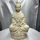 This vintage Chinese statue of Quan Yin, also known as Kwan-yin, is a beautiful addition to any collection. Crafted from resin with intricate details, this 12.5 inch statue stands out in any setting. The statue's white color and original vintage status add to its charm and appeal. The statue's theme is Kwan-yin, a beloved figure in Chinese Buddhism. It is believed to have originated from China and is a vintage original piece. Perfect for collectors of antiques and Asian art, this statue is a must-have for anyone who appreciates the beauty and history of Chinese culture.