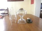 Offered is a true antique clear glass oil lamp complete with burner and clear glass chimney. Please view all pictures before bidding they are part of the description. This estate sale find square base oil lamp is 5" wide and 17" tall. This lamp is marked on brass collar Patented Sep. 19, 1882 and Dec. 4, 1883, it is clear glass with 4 3/4" square base, oil lamp is 5" wide and 8" tall (with out chimney or burner). The 3" fitter clear glass chimney is 8 1/2" tall. The #2 burner is marked No 2 QUEEN ANNE No 2. This oil/kerosene lamp is in good used condition with normal wear no cracks or chips, the burner works, ready to use, it would be great to used or add to a collection. Thanks for viewing. I will combine shipping cost to lower cost. If you have any questions, concerns or need additional photos, please feel free to contact me before bidding. I try to give the most accurate description possible. If there is something you feel is important that I have missed, please ask before bidding. I sell all items in as-found and in used vintage condition unless otherwise stated. all sales are final. I accept payment by PayPal or pay on pickup.