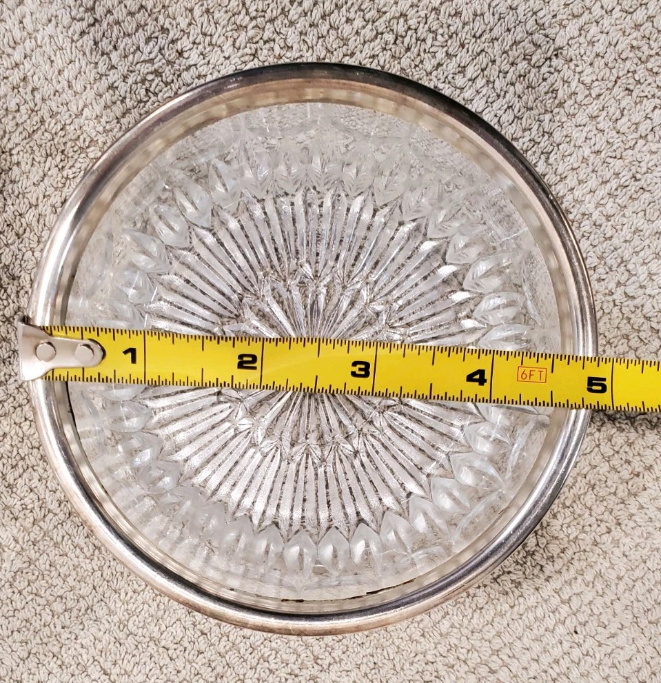 Vintage Clear Pressed Glass Serving Bowl With Silver Metal Trim Set Of 2