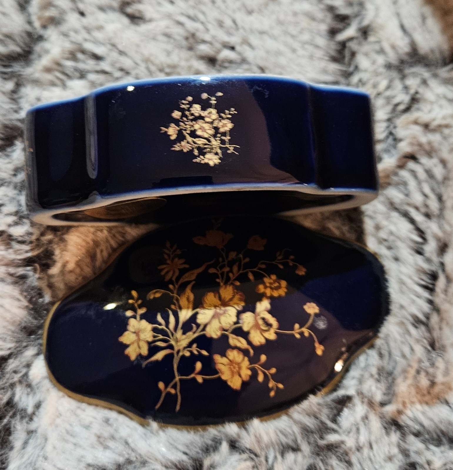MOM'S ESTATE SALE Vintage Cobalt Limoge Porcelain Trinket Box ((Marked) 3 1/2" Long 2" Wide " Deep