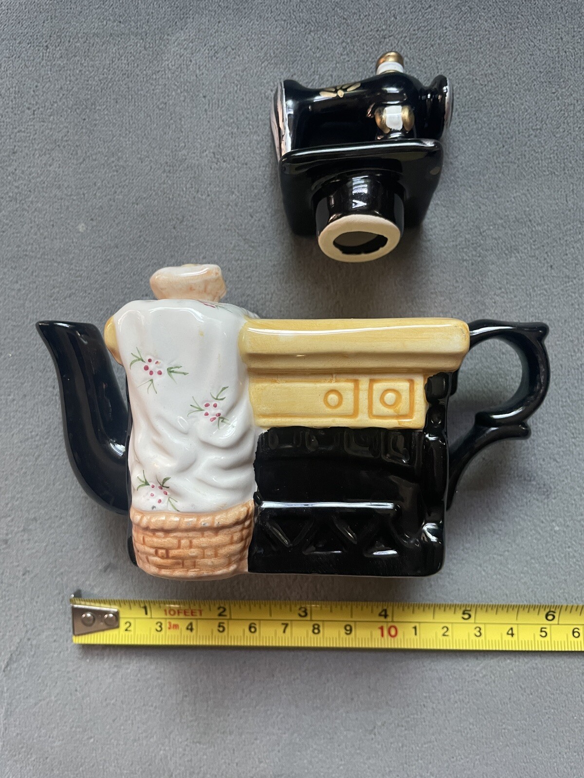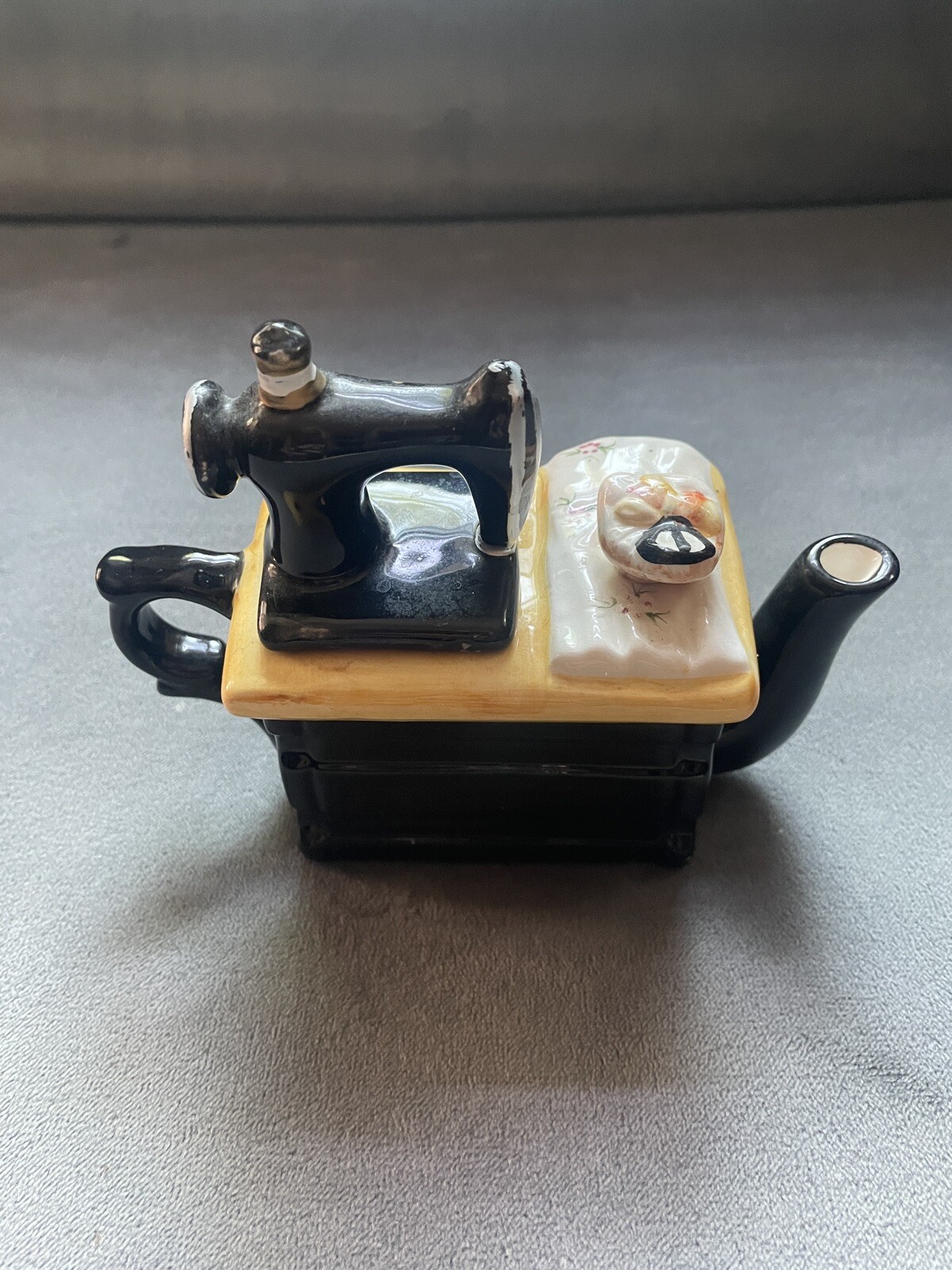 This charming teapot is a must-have for any collector or lover of vintage items. With its unique Sewing Machine design, this ceramic teapot is both functional and decorative. The multicolor design adds a touch of whimsy to any tea time.