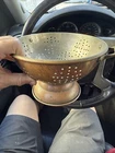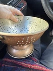 Vintage Copper Collander Strainer Brass Handled Small 10” Korea GDI