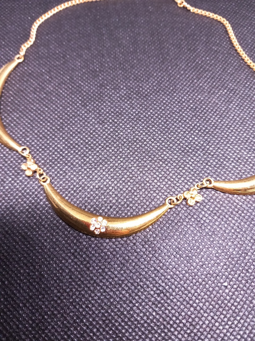Item: Fab necklace. Flat lay design with alternate shiny and matt surfaces.15" 38cm. Spring ring clasp. Sparkly rhinestones. Condition: Good unused condition, some signs of wear from being in storage: see photos. DISPLAY BOX/STAND NOT INCLUDED.