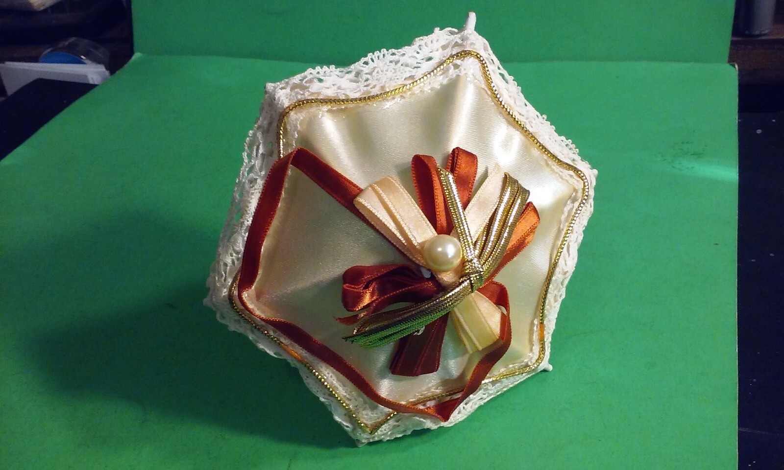 Vintage doll or decorative Umbrella Parasol Fancy Lace Wire & Ribbons Crafted.