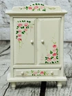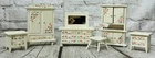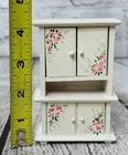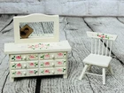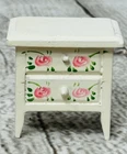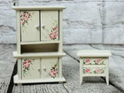 Add a touch of vintage charm to your dollhouse with this beautiful bedroom set. Hand-painted in delicate pink roses, this miniature wooden furniture set is perfect for a child's bedroom. The set includes a table and is suitable for a bedroom with a vintage touch. Crafted with care, this bedroom set is a perfect addition to your dollhouse. The set is suitable for children aged 5 and above and is made of high-quality wood. This vintage-style bedroom set is sure to impress your guests and make your dollhouse stand out.
