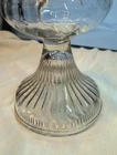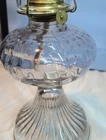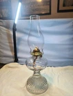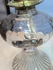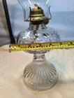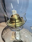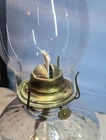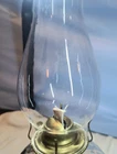 This vintage Eagle glass oil lamp burner with chimney is a beautiful addition to any collection. The lamp has a swirl border and petals design with a daisy shape. It is made of brass and glass and has a rotary knob control style. The lamp is adjustable and has a power source of oil. The cord color is none and the shade shape is chimney. The lamp is 18 in height and has a base diameter of 5". The lamp is an original Victorian style and was manufactured in the United States. If you look at the twist knob you can see the manufacturer I just can't make out the name but it was manufactured in the USA