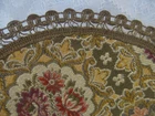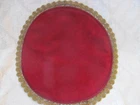 Vintage brocade or tapestry round doily with metallic dull gold trim. Velvet backing. European made. Measures 9.75 across. I have not cleaned or treated this piece. No damage~no stains or spots. No breaks on the trim. Very clean feeling! Non smoking home. Check out more antique linens in our Store and other Auctions! _____________________________________________________________________________ Please email with any questions or concerns. No problem to combine any of our auctions to save $$ on shipping costs. Cost is based on the total weight of the items. We use plenty of big bubble bubble wrap~~you can be assured that that they will arrive intact. Thanks so much! 3531