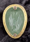Discover a touch of elegance with this vintage gold enameled egg trinket box, reminiscent of the Fabergé style. Adorned with a delicate floral pattern, this small yet heavy keepsake box is a testament to craftsmanship, featuring a lustrous finish and a luxurious gold trim that exudes sophistication. The multicolored enamel details provide a captivating contrast, making it a versatile piece that complements any decor. Convenience and security are ensured with a double magnetic closure, keeping your treasures safely tucked away. Measuring 3 inches in length, 1.5 inches in height, and 2.2 inches in width, this trinket box is perfect for all occasions. The trinket box is in excellent used condition. There are no chips or cracks and very minimal wear (on the inner rim of the lid).