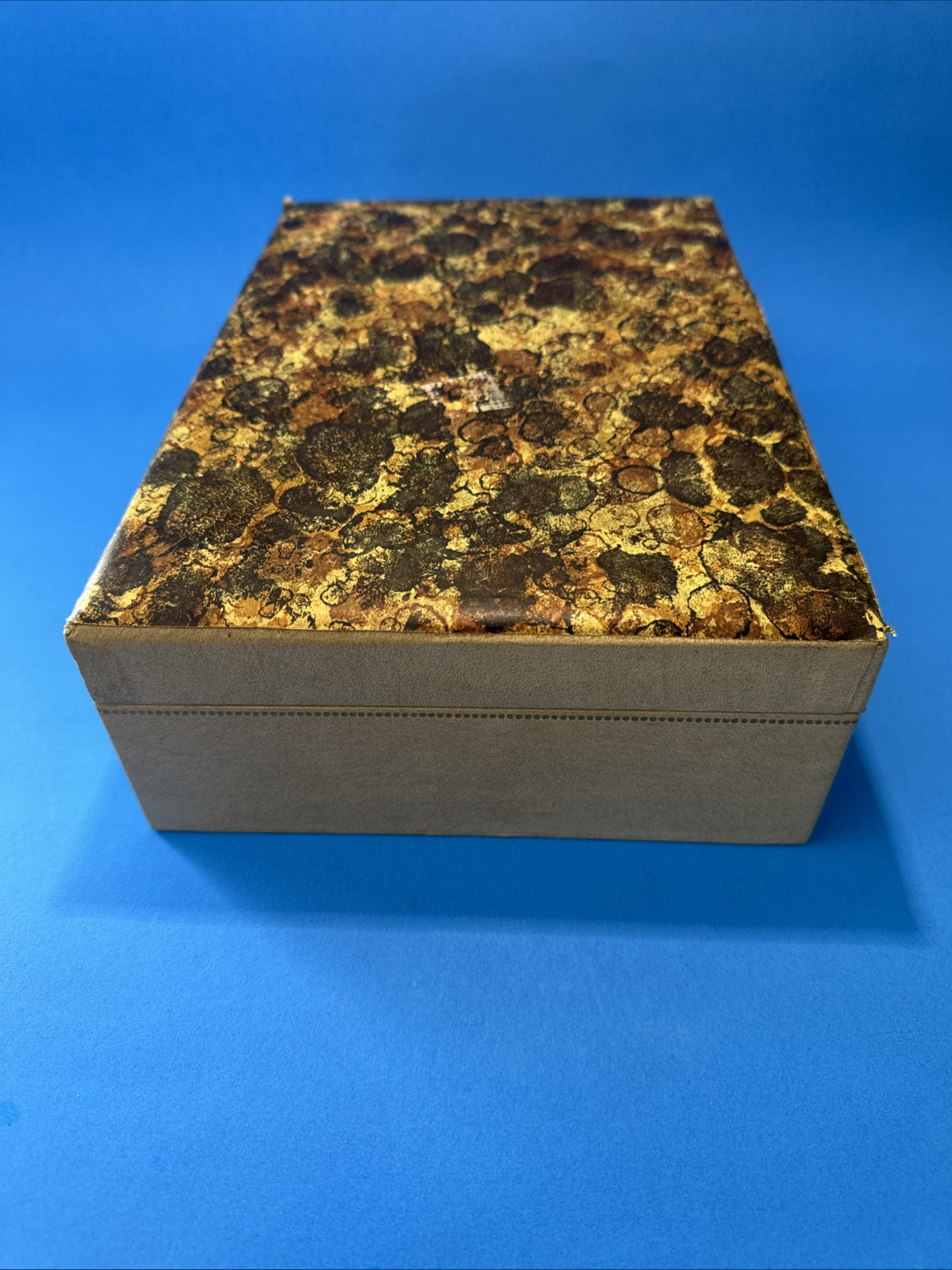 This vintage jewelry box from Bond St. Jewel Case Corp is the perfect organizer for all your precious jewelry. The faux tortoise shell & cream color with red velvet and satin lining adds a touch of retro elegance to your collection. The box features a pop-up tray and lock, making it easy to keep your items safe and secure. Made with faux leather, wood, and velvet, this jewelry box is suitable for necklace, bracelet, ring, anklet, cufflinks, earring, and body jewelry. The rectangular shape and original key make it a unique addition to your collection. This jewelry box is perfect for unisex adults and was made in the United States.