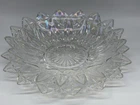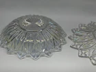 Elevate your dining experience with this stunning Vintage Federal Glass Iridescent Clear Petal Bowl and Plate Set. The set includes a 10-inch round bowl with a matching plate, beautifully crafted with pressed glass technique and fused glass production style. The clear glass material with a vintage pattern and flower theme design adds a touch of elegance to any table setting. This set is a perfect addition to your decorative cookware and serveware collection. Made in the United States, the Federal Glass brand has been known for producing high-quality glassware with mirrored features. Whether for a special occasion or everyday use, this set is sure to impress your guests.