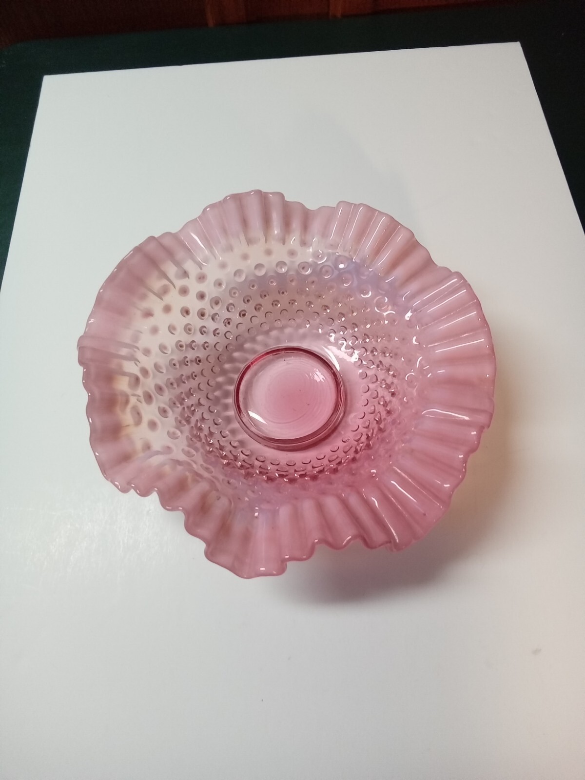 Discover a piece of history with the Vintage Fenton Art Glass Cranberry Opalescent Hobnail Bowl. Crafted in the mid-20th century, this striking 10-3/4" bowl showcases the timeless elegance of mid-century modern design. With its glossy cranberry finish and classic hobnail pattern, it's a great addition to any glassware collection or display. The bowl's double crimped features and studio-crafted production technique speak to its quality and uniqueness. Please note, to maintain its vintage beauty, hand wash care is recommended. Is in used condition with no chips or cracks. See photos.
