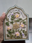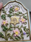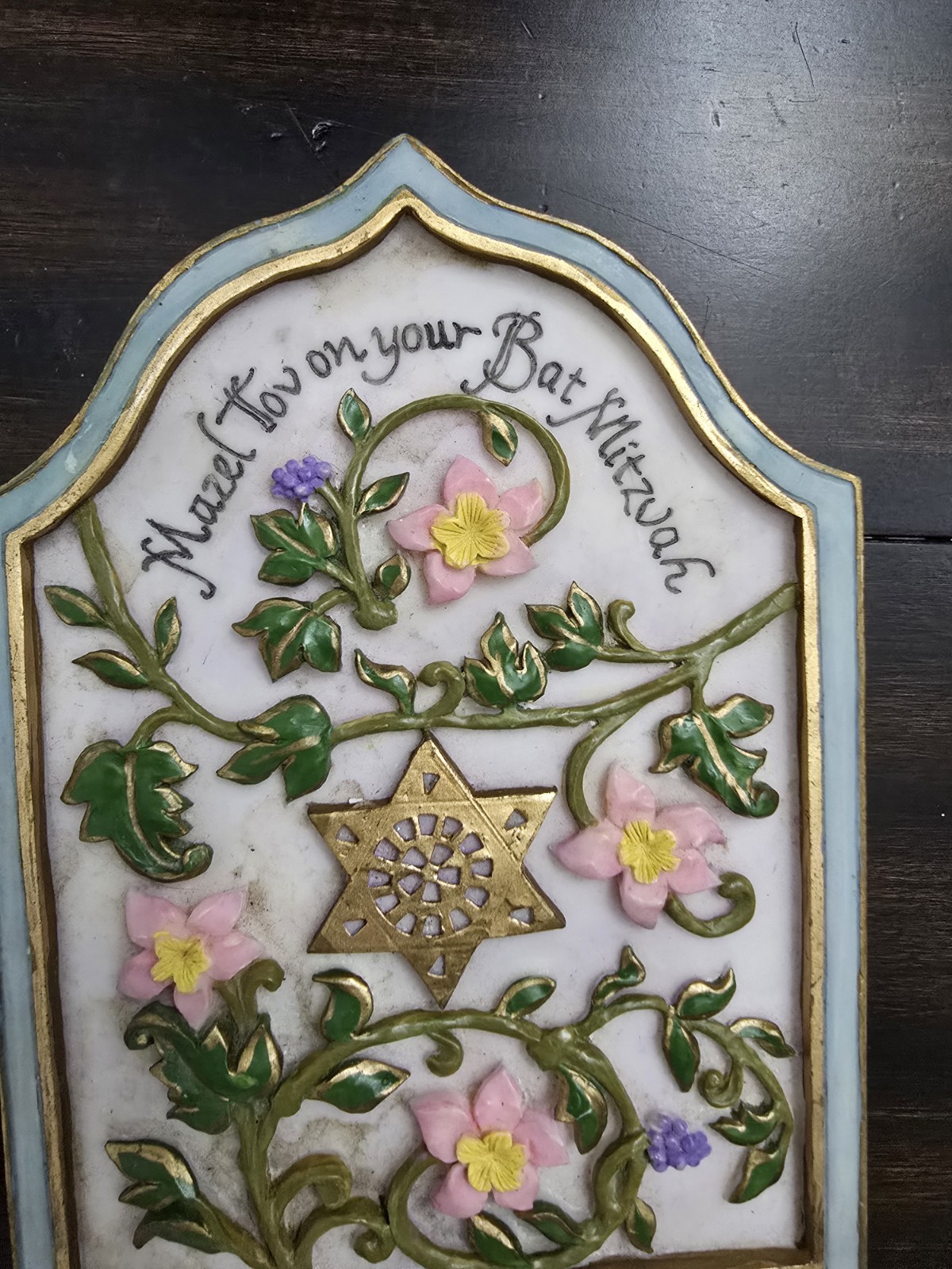 This Vintage Batmitzvah Trinket Box is a beautiful and unique keepsake item with a floral velvet lining. Handmade in the Russian Federation in the 1990s, this original trinket box is perfect for storing small treasures or jewelry. The stylish design makes it suitable for any room and occasion, adding a touch of elegance to any collection of decorative items. The vintage charm and high-quality craftsmanship of this trinket box make it a cherished piece for any collector or special occasion.