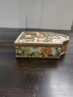 $ 13.2Vintage Italian Suede Wood Jewelry Box in Emerald Green with Poinsettia Design
