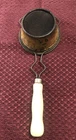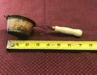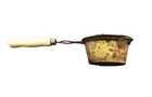 This antique vintage flour sifter, tea strainer is a must-have kitchen gadget for any collector. With its light yellow wood-tone handle and beautiful floral pattern, this piece will add old world charm to any kitchen. It measures 7 inches in length and has a diameter of 3 inches. This item is made of metal and comes with a wood handle and mesh strainer. It's condition is aged to perfect vintage style. It's a great addition to any farmhouse, country or eclectic style kitchen decor and is sure to impress your guests. This antique piece is a true gem and will make a great addition to any collection. This piece made in the U.S.A, has history, style and charm and is sold as is.