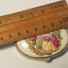 This is a very beautiful trinket/ pill box. Very delicate case with extensive swirl engraving on the exterior and interior.
