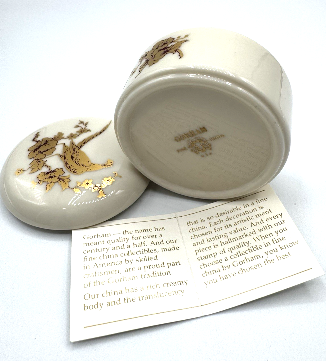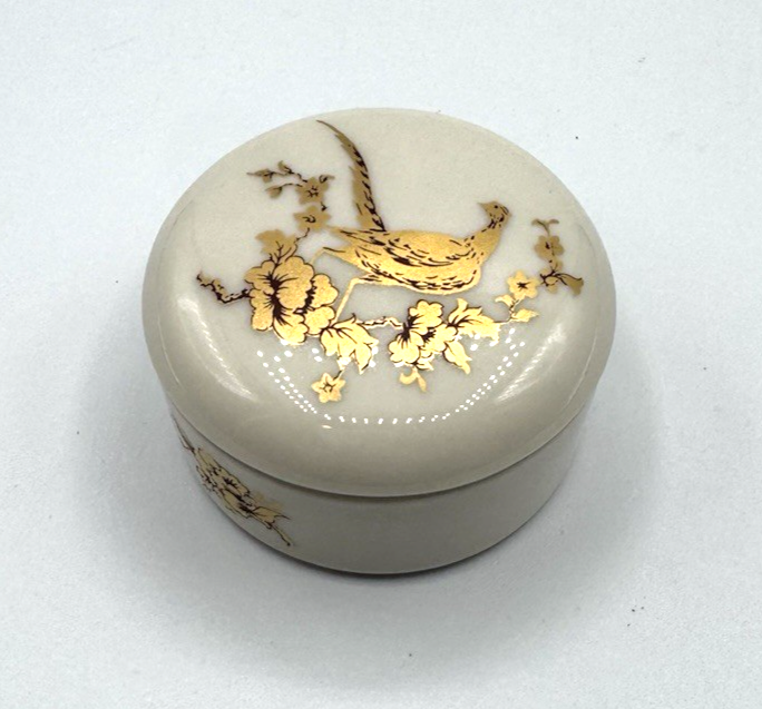 Vintage Gorham Fine China Gold Pheasant Covered Ring Jewelry Trinket Box