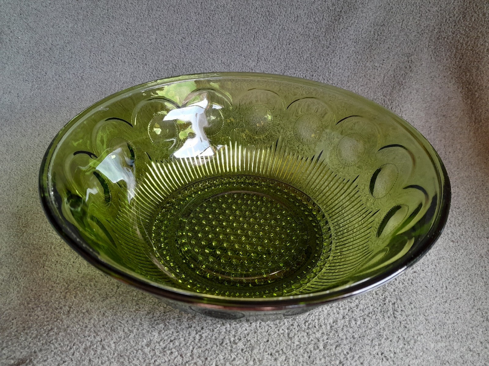 Vintage Anchor Hocking Avocado Green Starburst Medallion 7.75" Serving Bowl