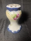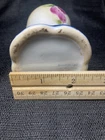 Vintage Hand Painted Nippon Pink Floral/Berries Cobalt Blue Hat Pin Holder 4”. Slight wear to color, no chips or cracks. Condition and measurements shown in pictures.