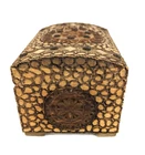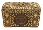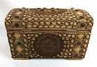 Antique Vintage Intricately Hand Carved Domed Top Jewelry Keepsake Box. Very detailed Completely hand carved with an intricate design with steel studs and excellent joinery. Box measures approx 7" by 4.5" and is a little over 4" in height. Dates to the Mid 20th century and is in very good condition with one very small tight age crack in the front left hand corner of the lid (see photos) If you have any questions just ask.
