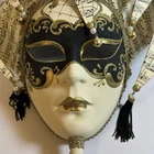 Vintage Hand-Crafted Venetian Harlequin Mask, Music Sheet Accents, Hand-Painted