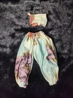 Barbie and shoes not included! For display of clothing purposes only This product is a handmade set of Barbie clothes, specifically parachute pants and crop tank top, designed for a 12 inch doll. The clothing is made from cloth material in a multicolor pattern, with a special occasion style suitable for a vintage look from the 1980s. It is a unique one-of-a-kind (OOAK) piece, perfect for a gender-neutral doll. The set is original and includes two pieces, a top and pants, making it a great addition to any doll's wardrobe for collectors or for adding a custom touch to a Barbie doll.