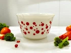 This is a vintage Hazel-Atlas milk glass bowl featuring a charming red polka dot pattern. The bowl is made of white milk glass with red polka dots, giving it a classic and retro look. The bowl is part of the Hazel-Atlas brand and is a decorative and great functional piece of serve ware perfect for serving beverages or mixing large batches of bread or cookie dough. It’s in excellent vintage condition without cracks or chips and the red dots are bright and crisp. Measurements approximately 5.75" tall x 9.75" diameter. Vintage Hazel Atlas Red Polka Dots Milk Glass Punch Bowl/Mixing Bowl 5.75” Tall STORE POLICY: Condition is “New Old Stock” without retail box. Bowl is 100 percent authentic and made in America. Sold as is, as found and as pictured. We aim to provide accurate and honest descriptions. All photos are an accurate representation of the product(s) you would be purchasing. Please zoom into the photos closely and judge the size, condition and content for yourself as our photos are a large part of our description. Please read descriptions carefully as we try to describe everything in as much detail as possible. Any concerns about the item’s condition, please address these concerns before purchasing. Most orders ship within 3-5 business days (Business days Mon-Fri) with USPS GROUND ADVANTAGE. *Expedited Shipping Option available at Checkout. Due to export limitations and restrictions, items listed in the Health & Beauty category CANNOT be shipped with eBay International Shipping. *Please check items included in eBay's hazardous, restricted or regulated materials policy. To ensure a positive shopping experience for all of our customers, returns ARE accepted. Items can be returned in their original condition for a full refund within 30 days of receipt; however, if an item is damaged or defaced by the customer, or if a new item is returned opened, used or without the tag(s) attached, the refund amount will be reduced by up to 50% as allowed by eBay. By purchasing this item(s), you are agreeing to this store policy. All returns must go through eBay Returns Center. If for any reason you no longer want to keep your item(s), please open a return request through eBay - We will provide a return label free of charge. We abide by eBay's rules and regulations for returns, if they are met, you will be refunded. If you have any further questions about the return policy, please visit this eBay link: www.pages.ebay.com/returns/#how_it_work If there is an issue with your purchase, PLEASE do not leave negative feedback before you have contacted us to resolve any issues. If you have any questions or concerns, please contact us directly by selecting the 'CONTACT SELLER' option. We will work with you quickly to resolve any questions or concerns. If any of our national network of stores identify unreasonable, problematic transactions, we reserve the right to block any buyer from future purchases at our discretion. Buy with confidence and rest assured that you are dealing with an experienced store whose #1 priority is customer satisfaction. We list new items continuously, so add us to your favorites list and check back often as you never know what you'll find here. Look around in our store as we have a huge selection of fragrances, skincare, makeup and other beauty products as well as vintage and hard to find items. THANK YOU for shopping with us! We want you to be happy with your purchase! PLEASE don't forget to leave positive feedback and give 5 stars in Seller's Rating. The information provided here is strictly to be used for informational purposes only. We do not represent or warrant the product details, ingredients, nutritional value, or any other product information to be accurate or complete. Manufacturers improve or change their product formulas, update labels, and change their packaging. It is recommended that you do not solely rely on the information described in this listing. For any specific product information or concerns, it is recommended that you contact the manufacturer directly. If there are healthcare concerns or questions, please contact your licensed healthcare professional for advice. Attention VeRO members: We are not affiliated or endorsed by the companies mentioned in this listing. All trademarks and copyrights are acknowledged, they are only used for informative description of the items offered for sale. All items are authentic as evidenced in our photos, legally acquired and owned, and hence; covered under First Sale Doctrine. Unlawful VeRO removal of this listing WILL constitute perjury and result in legal action.