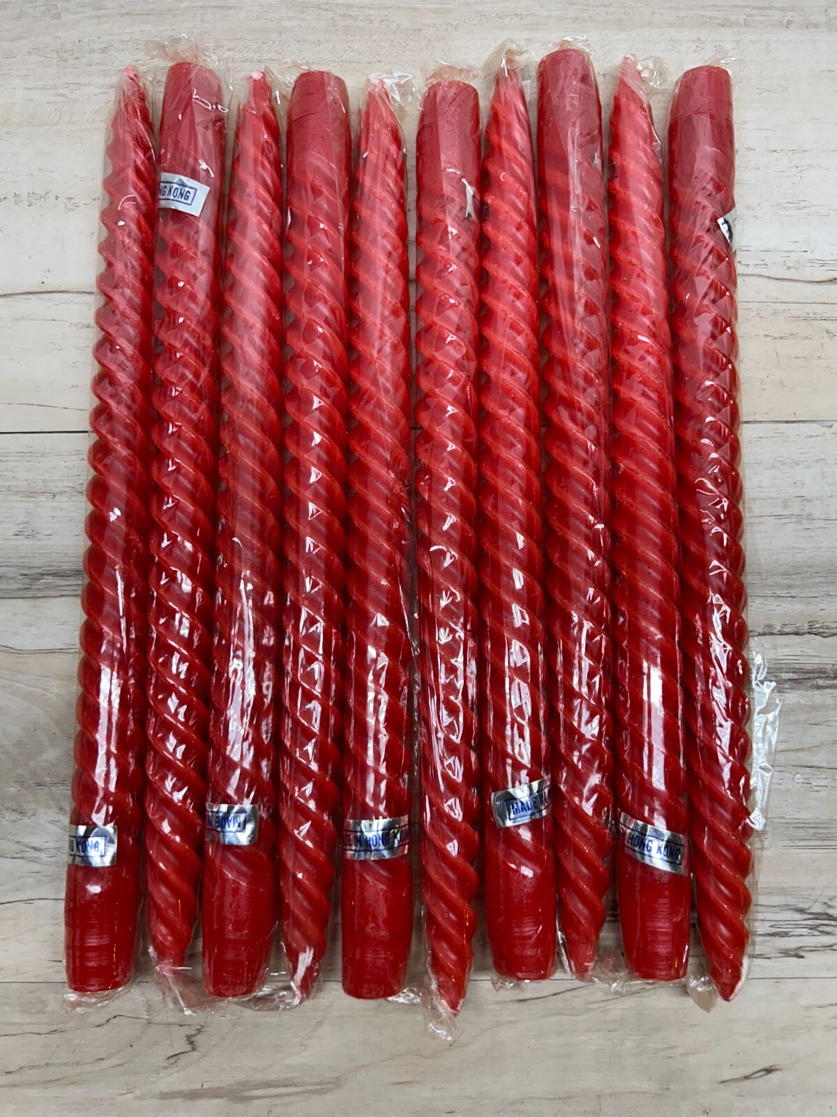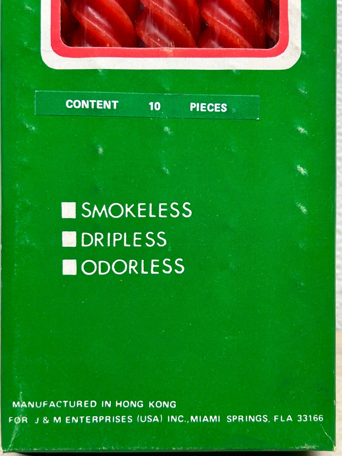Vtg Jayem Twisted Spiral 12" Holiday Red Candles Smokeless Dripless 10Pc Box.Never used-in original package.Some may not be perfectly straight from age