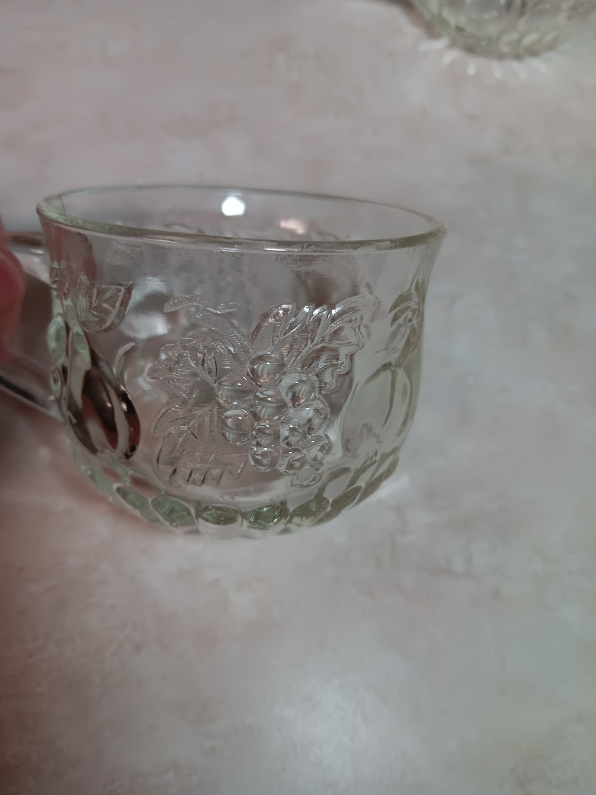 11 Cups all beautifully clear with no cracks or chips seen or felts. Some have minor imperfections over the years, but incredibly minor! Each glass cup is 2.25" tall with a diameter of 2.75"