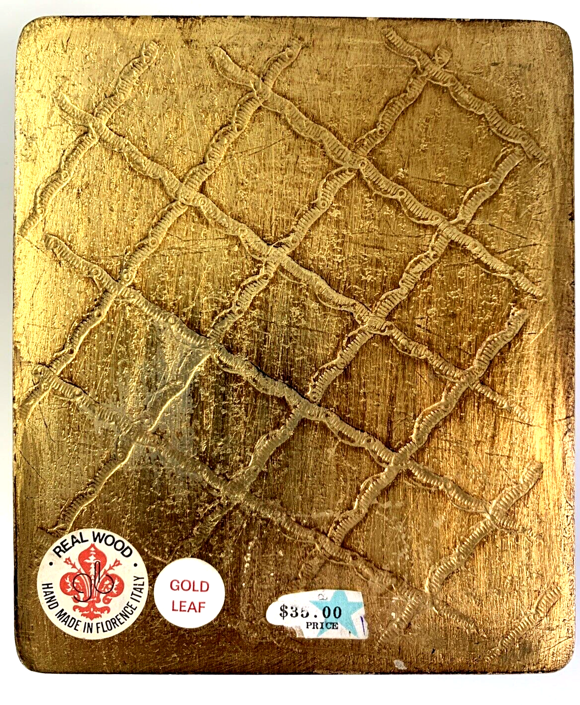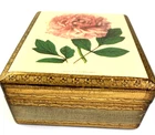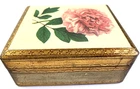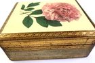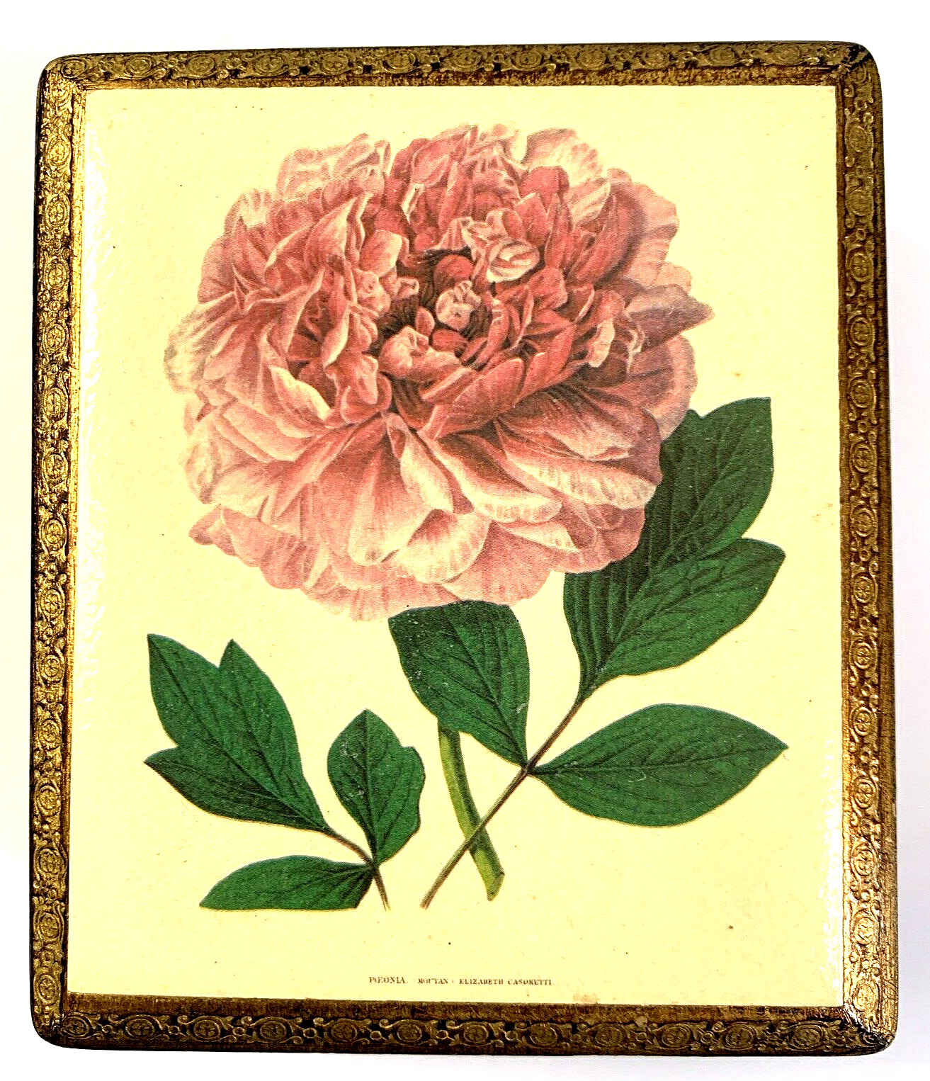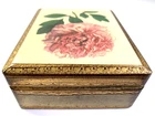 Vintage Jewelry Box Hand Made in Florence, Italy Real Wood with elegant Gold Leaf Hand painted by Elizabeth Casoretti featuring a beautiful Pink Peonia Moutan (Peony). Box is Approximately 5" by 4.25" with a hinged lid in excellent used condition. Please check out all the pictures