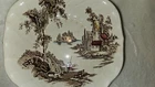 This vintage Johnson Brothers serving bowl is a beautiful addition to any collection. The oval-shaped porcelain bowl features a glossy finish and is adorned with an engraved, decorative pattern of The Old Mill. The two-piece set includes a serving bowl and is perfect for all occasions. The bowl is made in England and is 9 inches in length, 7 inches in width, and 2.5 inches in height. It weighs 2 pounds and has a printed backstamp. The item is a vintage piece from an unknown era and is perfect for those who appreciate colonial style. Care instructions advise hand washing only.